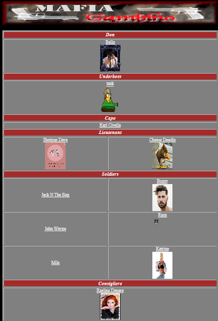 | Place | Name | Shot Target | | Place | Name | Fights Won | | Place | Name | Extorts | | Place | Name | Robs |