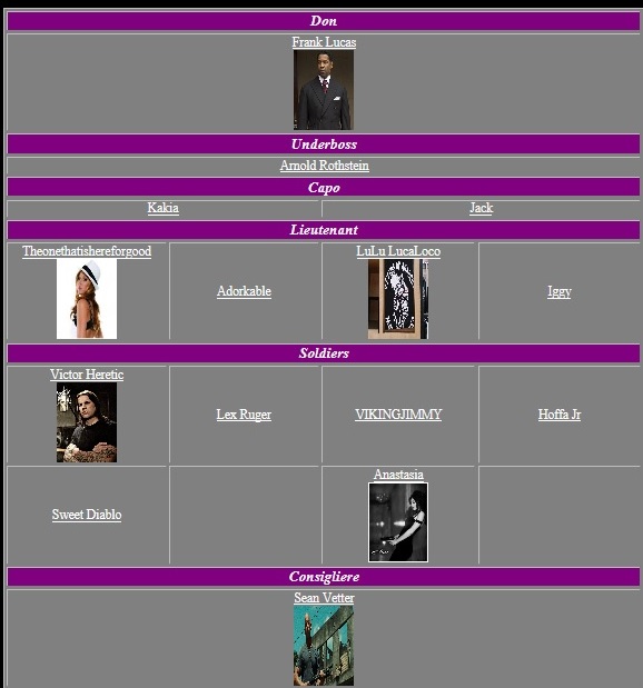 | 2nd | Raelina Denaro | 21 | | 2nd | Benny the Grocer | 1,960 | | 2nd | Frank Lucas | $148,150,332 | | 2nd | Tommy Thompson | 10 |