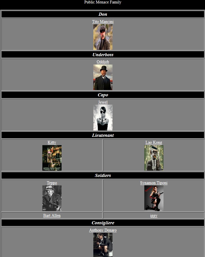 | 2nd | Vito Corleone | 22 | | 2nd | Anthony Denaro | 1,995 |