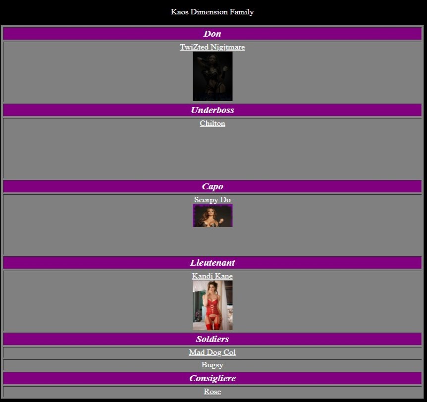 | Place | Family Name | Wealth | Place | Family Name | Power | Place | Family Name | War Wins | Place | Family Name | Overall Top Family |