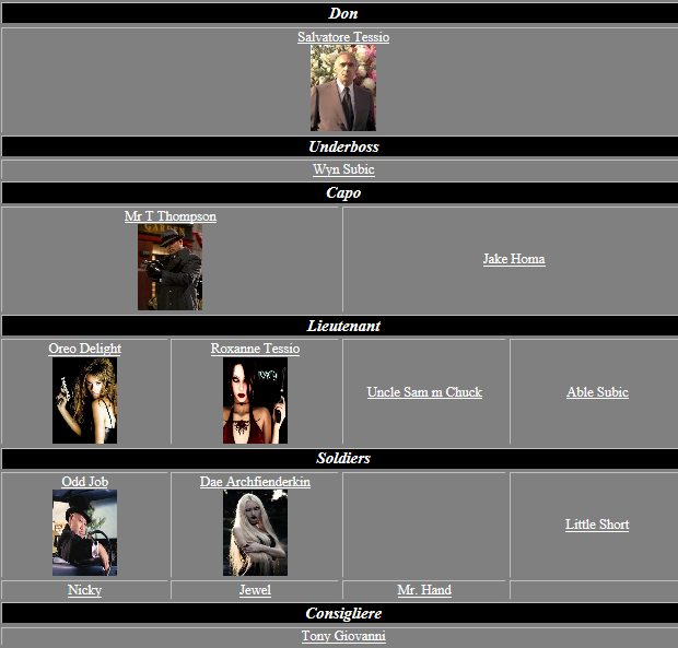 | 2nd | Jolly Roger | 11 | | 2nd | Salvatore Tessio | 2,058 | | 2nd | Salvatore Tessio | $485,098,942 | | 2nd | Patsy Adams | 9 |